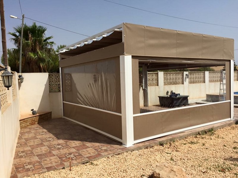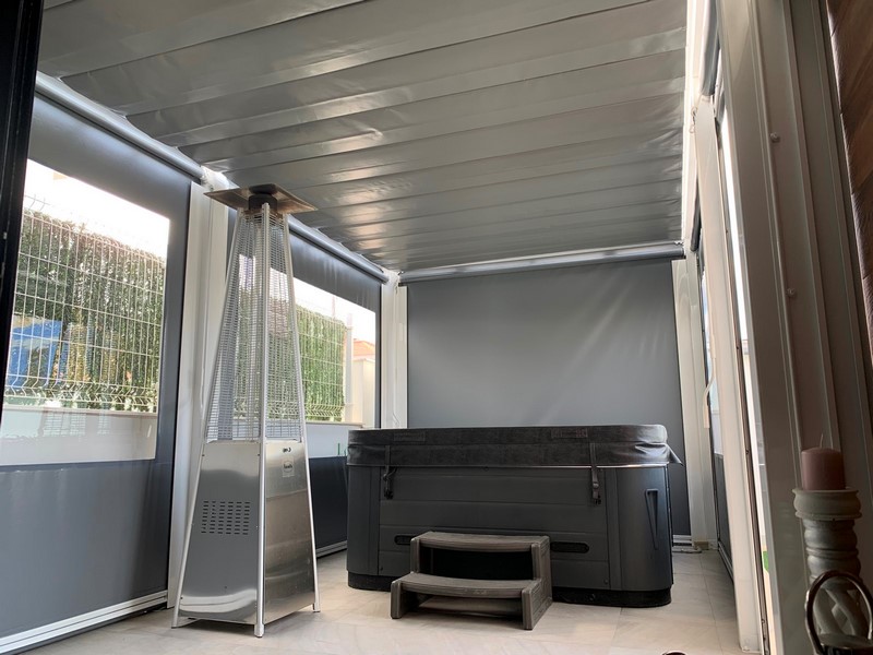 Los toldos de telón, o sistema de toldo vertical es ideal para cerrar pérgolas, porches, cobertizos...