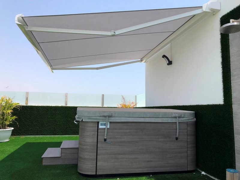 El toldo de brazo extensible ó brazo humano, protege y viste terrazas y balcones.