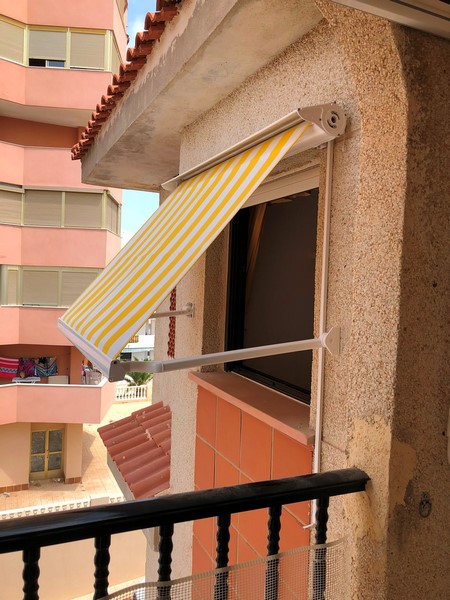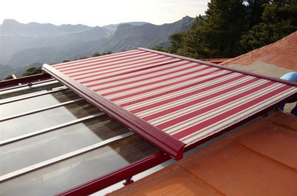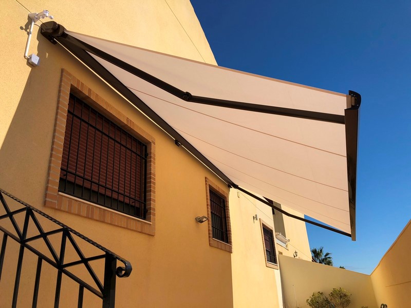 El toldo de capota se recoge y extiende a modo de bisagra (plegable), proporcionando una protección solar a cualquier hora del dia por su estructura, cubriendo la ventana lateral y frontalmente (a modo de marquesina), integrándose perfectamente con todo tipo de arquitecturas y favoreciendo la intimidad en la vivienda.